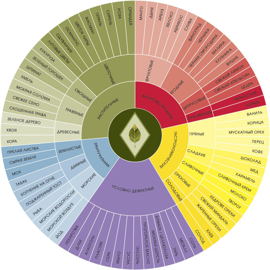 Давайте говорить о чае многословно)) Чем больше нот вкуса и аромата мы с Вами распознаем в напитке, тем больше он нам понравится. Колесо вкуса – инструмент для вдумчивой дегустации, когда Вы не только наслаждаетесь «вкусным», «терпким» чаем, а когда погружаетесь в ощущения от «чая со сбалансированным интересным вкусом, где смолистые нотки, немножко копченые, уравновешены сладкими оттенками кураги и клевера». Это подсказка и для новичков, и для профессионалов, где собраны и сгруппированы распространенные ноты вкуса и аромата чистых сортов чая. Это конечно не исчерпывающий список, но его достаточно, чтобы запустить «титестеровскую мысль». Как пользоваться Колесом вкуса чая? При дегустации рекомендуем сначала прислушаться к вашим ощущениям от вкуса и аромата чая, примерно оценить, какого он типа: фруктовый, солодовый, или свежий травянистый? Затем найти соответствующие сегменты на Колесе вкусов, и дальше исследовать, какие именно ноты могут описать то, что вы почувствовали. Самое важное