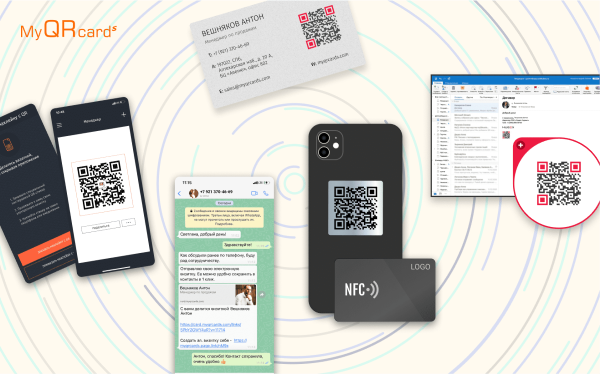 - Еще один рабочий способ поделиться визиткой – самоклеящийся NFC или QR-стикер на телефон или ежедневник. Через него можно делиться контактом, не включая смартфон. Ваш клиент может отсканировать QR-код визитки камерой смартфона или приложить смартфон к NFC-стикеру. Так или иначе, когда вы позвоните, вас всегда узнают, а входящий звонок не будет определен как «нежелательный».