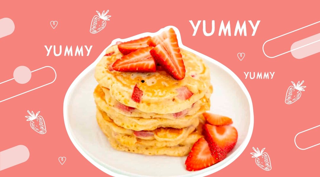 Directions: Step 1: Mix flour, baking powder, sugar and salt in a bowl; pour in milk, egg and oil stir well. Add strawberries. Step 2: Grease and heat a large skillet. Step 3: Pour a half ladle of batter onto the skillet and cook 2-3 minutes. Cook on the other side until ready. Step 4: Serve the pancakes with butter! Yummy!