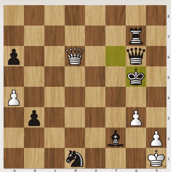 Шахматная задачка. Ход белых, белые начинают и ставят мат в 2 хода. Подписывайтесь на канал и будут более интересные задачки. Решение смотрите далее. 1. Белые дают шах ферзем на "f4". 1. ......................................... черные отходят королем. 2. Белые ставят мат на "h4". Следующая задача тут