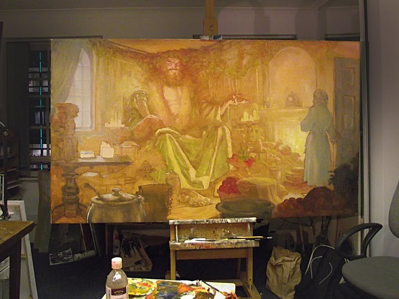 Оказалось, что художник боялся, что не сможет должным образом передать в иллюстрациях атмосферу книги, поэтому построил модель деревни, в которой разворачивается действие, и нанял актеров. Они переоделись в костюмы, соответствующие эпохе, взяли реквизит и разыграли некоторые сцены. Линч заснял их, а затем использовал эти снимки в работе.