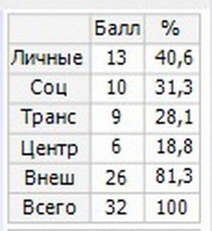 Строка - Личные. Это сумма всех баллов личных планет в формуле. Средний показатель здесь 14 баллов.