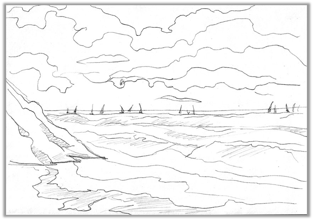 Огромное количество работ художников посвящены теме моря. Жанр Марина (marine, marina, от marinus — морской) объединяет картины с изображением морского пейзажа или действий, происходящих на море. Большинству из нас известны потрясающие по своей масштабности картины известного российского живописца И.К. Айвазовского. Теме моря он посвятил всё своё творчество. Море в его работах представлено во всем своем многообразии. В предлагаемом мастер-классе вы познакомитесь с техникой работы акварельными карандашами. Для рисунка воспользуемся мотивом моря. После отгремевшей грозы воздух наполняется ещё большей свежестью и влажностью. Активнее звучат холодные оттенки бирюзово-синего цвета в сочетании с лимонно-желтыми переливами света, который подсвечивает гребни волн и край прибрежных скал. Работа будет выполнена акварельными карандашами. Возможности акварельных карандашей позволяют работать как по сухой бумаге, так и по мокрой. Можно сочетать эти два приёма с размытием цветового пятна. Оттенки р