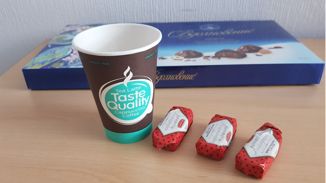 Всем привет! Всю ночь не спала от вчерашней несправедливости, а в 9.30 уже началось совещание на работе. Кофе и конфетки немного скрасили утро ☕ Завтрак Синяя коробка с конфетами у меня для гостей (вкусные конфеты "Вдохновение", попробуйте при случае), а с кофе я съела красные, которые привезла из Минска - "Коммунарка" (39 г) Завтрак - 186 ккал (и только на трех конфетках...) Обед На обед у меня была тушеная картошечка (160 г) с фрикадельками (120 г), перцем и помидорками Черри, которые я вчера приготовила в мультиварке. Калорийность перца и Черри я не учитывала, т.к. в тушеном виде их не ем)) Но от перца запах - нереально вкусный! Я раньше тушила с томатной пастой, но в этот раз ее не было в моем хозяйстве) С перцем в разы вкуснее!!! В обед вошли еще три конфетки "Минчанка" (39 г). Обед - 497 ккал Полдник Через несколько часов после обеда съела такую же порцию, как на обед, но уже без конфет)) Полдник - 376 ккал Ужин На ужин доела Черри (119 г), оставшуюся картошку (160 г) с фрикаде