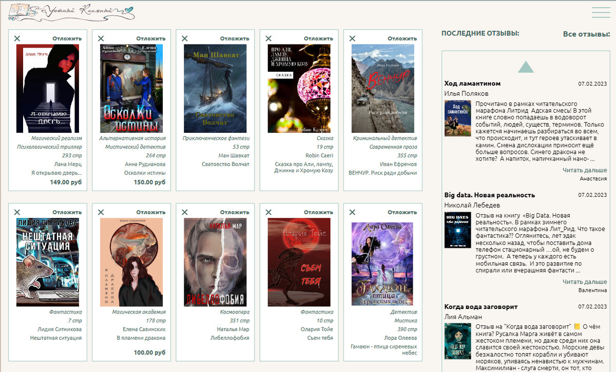 Много у меня теперь связано с Лит_Ридом. Что это за дверь такой? А всё просто - читательский марафон. В обмен на доступ к книге читатель пишет развёрнутый отзыв. Книг 21, самых разных жанров, после одной книги можно взять другую. И так 21 раз. После читателей ждёт награждение, награждает как сообщество, так и авторы активных читателей, авторов самых ярких и самобытных отзывов. Отзывы должны быть написаны так, как прочувствовано произведение: никто не просит хвалить книгу, обмывать её приторными словами по типу "какая шикарная", "лучшее, что я читал". Читатели оставляют даже стихотворение в виде отзыва, их интересно читать, а не только произведение. Порой устаёшь от "спасибо", "как интересно", "где прода", а потому отдыхаешь и радуешься, когда видишь столько много слов от читателей, пусть это написано не про мои книги. Каждый день захожу на портал "Уютный Книжный" и вижу в колонке справа новые отзывы: от блогеров, авторов, людей, которые несколько лет подряд участвуют в этом движе,