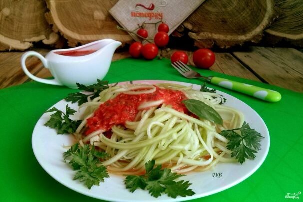 Все мы любим вкусно поесть. Так почему бы нам не поесть вкусную и здоровую пищу. Узнайте, как приготовить сыроедческие спагетти из кабачка с острым соусом. Блюдо понравится не только сыроедам. Описание приготовления: Сыроедческое питание подразумевает употребление продуктов без тепловой обработки. При этом сохраняются все витамины, минералы и микроэлементы. Включите в свой рацион этот быстрый и вкусный рецепт сыроедческих спагетти. Готовьте на здоровье! Ингредиенты: Кабачок — 1 Штука Помидор — 2 Штуки Перец болгарский — 1/2 Штуки Перец жгучий — По вкусу Чеснок — 3 Зубчика Соль — По вкусу Базилик — 1 Штука Масло оливковое — 1-2 Ст. ложек