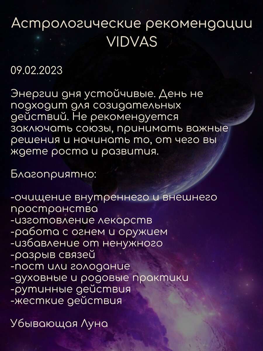 Астрологические рекомендации Vidvas на 9 февраля 2023