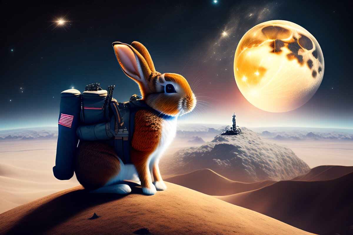 Кролик Бенни был любопытным маленьким кроликом, который жил в маленькой деревне, окруженной полями моркови и салата. Его всегда завораживала луна, и с тех пор, как он был крольчонком, он мечтал попасть туда.