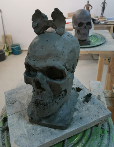 Бедный Йорик! Я знал его, Горацио... У. Шекспир. Впечатлена тремя уроками скульптуры, новый опыт. Лепить приятно. Мой Фердинанд, мой первый череп, создан из чужих губ, носов и ушей, брошенных в корыто с глиной после мастер-классов. Фердик, - позволь мне фамильярность, потому что я создатель твой и люблю тебя таким, какой ты есть, - ты ведь не просто очередной череп, выполненный неумелыми руками! Зачерпываешь этак куски лиц, и очередной раз осознаешь бренность бытия и мимолётность текущего, ежесекундно меняющегося. Вот были чьи-то живые губы-кто-то целовал их, восхищался ими настолько, что сделал мраморную копию. И была скала, выветриваемая веками. Стала она кембрийской глиной, которую полюбили скульпторы. Поколения людей объединили глину и губы, делая миллионы своих копий с мраморного образца, меняя первоначальный контур. И теперь она, последняя копия, лежит передо мной в куче глиняных останков. Беру, растягиваю в стороны-губы замедленно и очень выразительно разрываются в немом крик