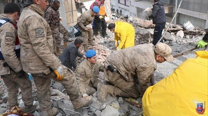 Под завалами до сих пор находятся люди. Спасатели работают в круглосуточном режиме. Фото: www.globallookpress.com / Cem Bakirci; 5-tv.ru Спустя почти двое суток после землетрясения в Турции и Сирии под завалами продолжают находить выживших! В сети появились кадры вызволения малыша, который провел все это время на холоде — без еды и воды. Пока одни спасатели пытались освободить зажатые ножки ребенка, их коллега поил кроху из крышки. Сейсмологи зафиксировали землетрясение магнитудой 7,7 неподалеку от турецкого города Газиантеп 6 февраля в 04:17 по местному времени (совпадает с мск). После этого были зафиксированы повторные толчки. В результате оказались разрушены тысячи зданий. Согласно последним данным, число погибших при землетрясении увеличилось до 5894 человек, число пострадавших составило уже 34 810. Президент Турции Реджеп Тайип Эрдоган заявил, что землетрясение стало самым сильным с 1939 года. В стране до 12 февраля объявлен общенациональный траур.