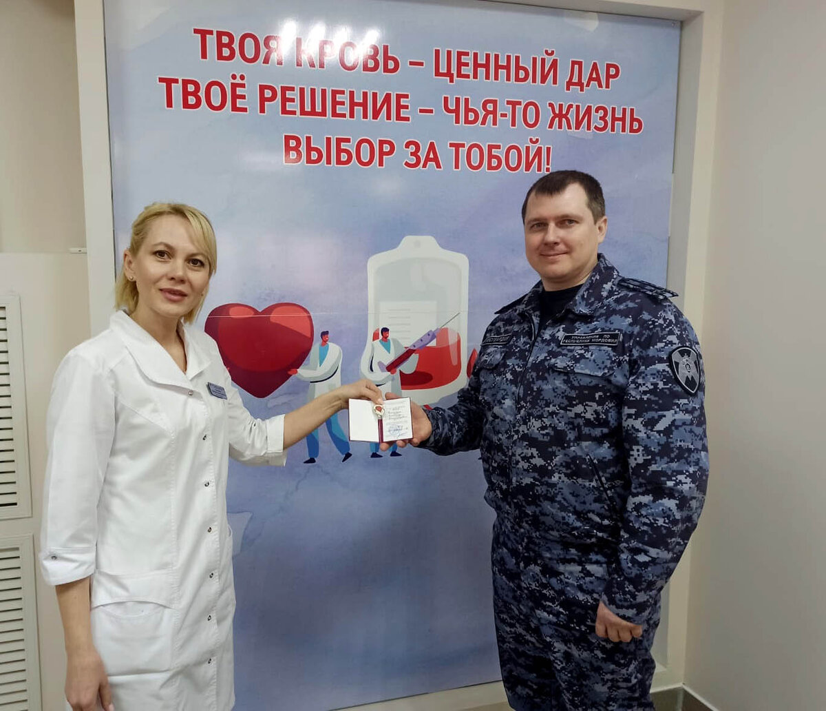 В Мордовии сотруднику Росгвардии вручили знак «Почетный донор России»