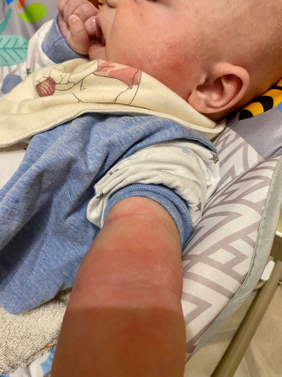 Итак, продолжу свой рассказ. Начало в предыдущей статье. Ребенку три месяца, мы приняли решение свернуть ГВ и в этот же день идём на приём к педиатру в поликлинику. К этому моменту как раз было обострение, аллерген накопился и у ребёнка покраснели сгибы ручек и ножек, а так же стала шелушиться кожа на локтях. Педиатр посмотрела Левушку, начала паниковать, дала направление к дерматологу в областную больницу, к инфекционисту. Потом резко замолчала и говорит: «Стоп, я поняла в чем дело, я разгадала эту загадку! Видите у него вот здесь сыпи больше, вот здесь меньше! Это контактный дерматит! Срочно перестирать все хозяйственным мылом, накрошить его на тёрке и перестирать все на 90 градусов, а что не жалко выкинуть вообще! У него аллергия на ваш порошок! Купайте ребёнка в траве, намажьте глицериновым маслом и все пройдёт!» Я начала объяснять врачу, что мы стираем гипоаллергенным гелем, что у него проявляется сильнее реакция после приема пищи и пересказываю ей разговор с аллергологом. На чт
