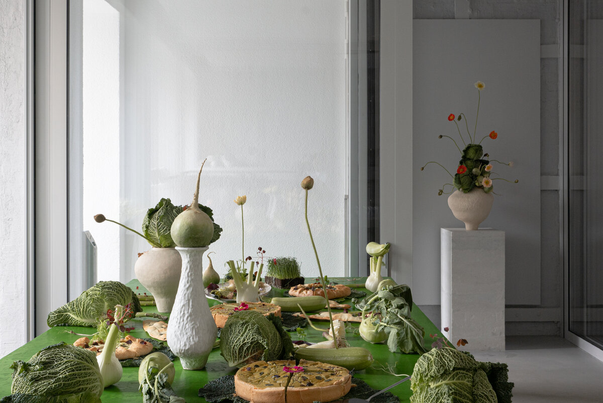 В Москве открылся форпост питерского ландшафтного бюро “Мох”, но не обычный офис, а многофункциональное пространство с флористическим салоном и галереей. Московское пространство “Мох” в Старомонетном переулке имеет подзаголовок “Природа. Сады. Культура”, а при входе в большущей вазе стоит флористическая композиция, которую обещают менять каждый день. В день открытия там были цветы вперемежку с редькой и капустными кочанами, а сервировка столов напоминала не то лабораторию, не то жизнь в нижних ярусах леса — то самое место, где в природе обитают мхи. Основную часть угощений выложили на футуристическом зеленом столе по дизайну студии KOZEEN+RUEDA, которая занималась архитектурой и интерьерами пространства. Короче, сразу было понятно, что, даже за вычетом других многочисленных функций, это не просто “цветочный” с холодильником для растений на центральном месте, а очень концептуальное заведение. Затейливые сервировки — это работа фуд-дизайнера Марины Леоновой, а флористической деятельность