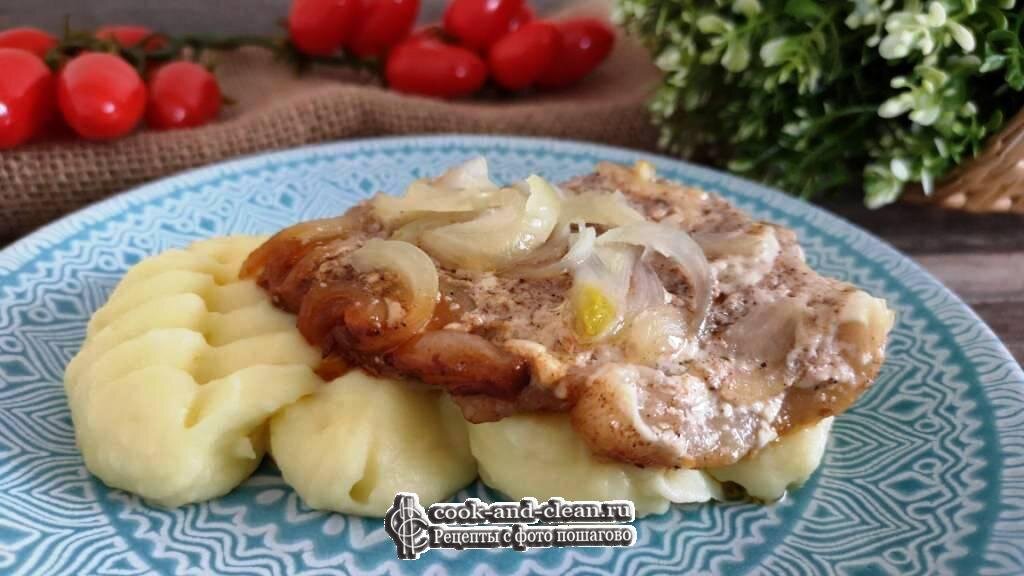 Свинина тушеная в майонезе идеально подходит как для праздничного стола, так и для семейного ужина. Свинину мы для мягкости предварительно отобьем, а для сочности обжарим на сильном огне с двух сторон. Так весь сок останется внутри каждого кусочка и мясо получится очень нежным. Тушение именно в майонезе на медленном огне пропитает свинину соками и ароматами и наше блюдо получится просто волшебным. На данное количество мяса можно взять лука в два раза больше. Но годы опыта показали, что двух больших луковиц для этого количества мяса будет достаточно. Приправим наше мясо вкусными специями и можно подавать свинину тушеную в майонезе как основное горячее на праздничный стол. Свинину нарезаем порционными кусочками толщиной 1 см. Каждый кусок накрываем пищевой пленкой и отбиваем в тонкий пласт с двух сторон. Я обычно отбиваю как можно тоньше, чтобы свинина быстрее потом приготовилась. Затем переходим к плите. Хорошо разогреваем сковороду с небольшим количеством растительного масла. И обжарив