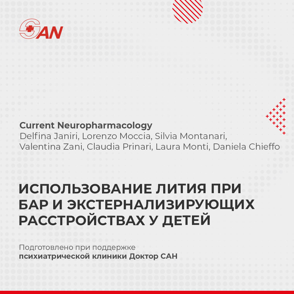 Результаты систематического обзора показали, что у детей с биполярным расстройством литий превосходил плацебо при маниакальном и смешанном эпизоде, но уступал нейролептикам. Эффективность лития колебалась от 32 до 82,4%. Частота коморбидности с другими экстернализирующими расстройствами была чрезвычайно высокой, до 98,6%. Также отмечена эффективность лития при расстройстве поведения, особенно при агрессивном поведении. Не было зарегистрировано серьезных нежелательных явлений, непосредственно связанных с литием; общие побочные эффекты были аналогичны таковым у взрослых. Подробнее о лечении БАР: https://doctorsan.ru/lechenie-bipolyarnogo-rasstroystva