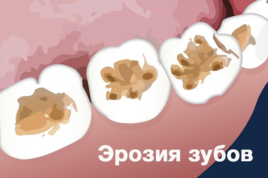 Эрозия зубной эмали — менее распространенная причина обращения к стоматологу по сравнению с "популярным" кариесом и его последствиями. Тем не менее мы иногда принимаем пациентов, обратившихся по поводу эрозии. Эрозия зубов — это некариозное поражение зубной эмали. Визуально она выглядит как овальные углубления на передней поверхности зубов. При этом дно этих углублений гладкое, может быть коричневого или желтого цвета. Создается впечатление, что зуб механически стерся в этом месте. Чаще всего эрозия не вызывает болезненных ощущений, но может возникнуть повышенная чувствительность при чистке зубов, употреблении горячей и холодной пищи, напитков. Точная причина возникновения эрозий неизвестна, но мы знаем, какие факторы повышают риск: Что включает лечение эрозии: Учитывая предыдущий пункт при появлении эрозии или подозрении на нее не стоит тянуть с визитом к врачу. Во-первых, нужна постановка диагноза — а самостоятельно определить, точно ли это эрозия или что-то другое, вы не сможете. Во