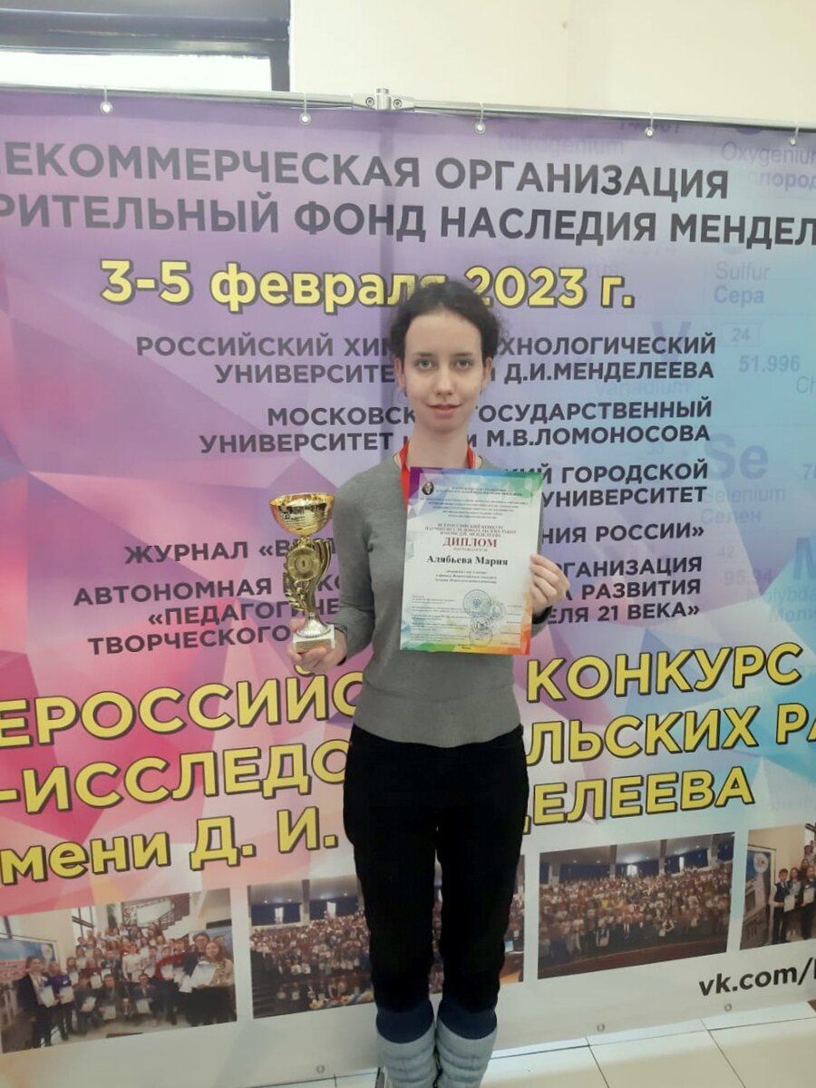 Со своей разработкой девочка победила в финале XIX Всероссийского конкурса научно-исследовательских работ имени Д.И. Менделеева. Мария Алябьева – учащайся школы №3 курорта и воспитанница центра дополнительного образования «Эрудит», в числе 600 ребят из 54 регионов Российской Федерации стала финалисткой Всероссийского конкурса. Краснодарский край представляли 19 школьников из шести муниципалитетов региона. Мария представила свой проект на психолого-педагогической секции конкурса. В основу работу легли результаты многолетней работы по созданию и внедрению интерактивного обучающего пособия по химии с использованием элементов педагогического дизайна. Пособие «Химия для чайников» разработано с учетом открытий в области нейробиологии и когнитивных наук. Используя нетрадиционные интерактивные каналы доставки информации, эмоциональные и ассоциативные визуальные объекты, применяя элементы НЛП-графики, Мария создала эффективный инструмент, который повышает уровень знаний по химии у учеников 8-9