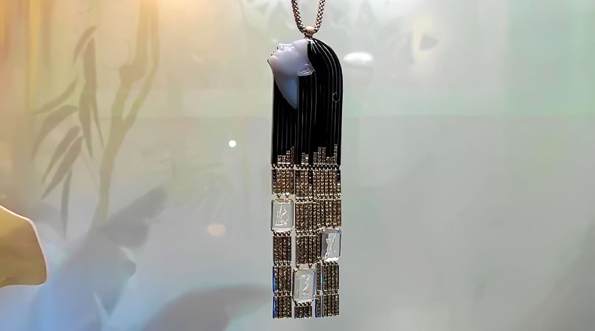 Многие художники обращаются в своём творчестве к мифологическим сюжетам. Вы видите авторскую интерпретацию Ундины в прочтении Ильгиза Фазулзянова, в современном исполнении. Женский образ в лунном свете пленяет мужчин своей красотой и пением. Мужчины, попадая в путы её волос погибают. Художнику удалось тонко передать состояние хрупкости отношений, благодаря кварцевым пластинкам, на которых изображены тела влюблённых в технике "инталия". На оборотной стороне, изображено тело мужчины, падающего в омут любви к этой женщине. Мужской образ выполнен в технике одноцветной росписи по эмали. Сейчас, подвес можно увидеть в рамках выставки ювелирных шедевров на ВДНХ "Эмоции. Магия драгоценностей", павильон 11 "Казахстан".