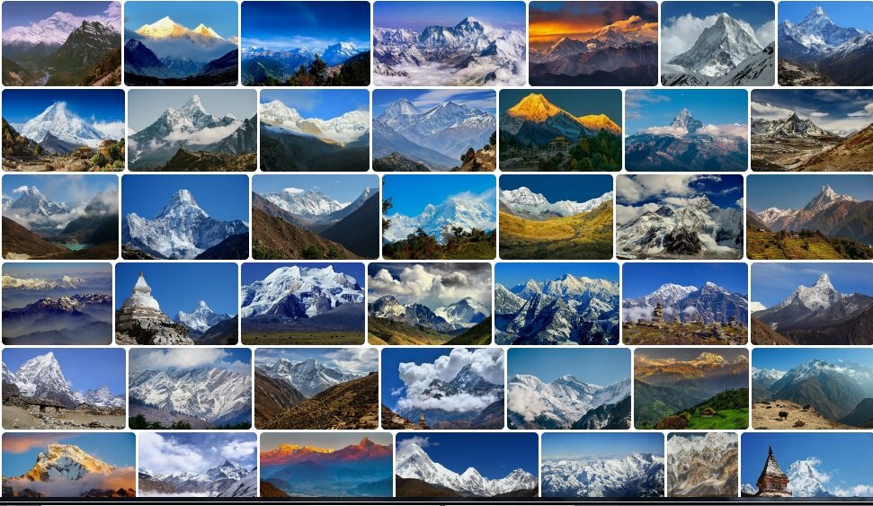 На реальных фотографиях Гималаев всё-таки встречаются тёплые краски