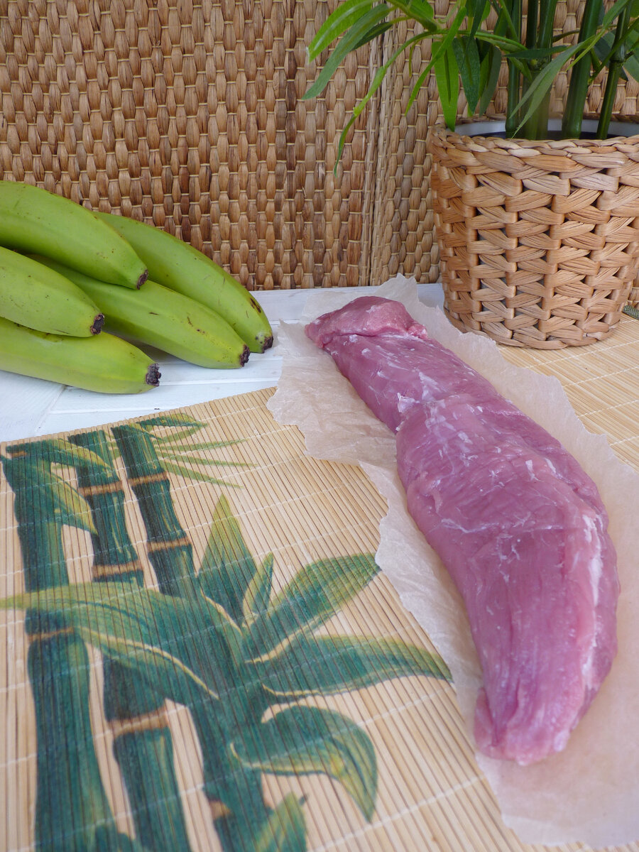 ИНГРЕДИЕНТЫ Для маринада Для глазури Задают тон блюду два нюанса, первый - маринад из копчёных специй, а второй - глазирование крем-бальзамиком с бренди и мёдом. Бананы лучше всего использовать зелёные, они менее сладкие и хорошо держат форму на гриле. Вырезку зачистила от жира и плёнок. Нарезала мясо на медальоны и прошлась по ним тендерайзером. Получается и слегка отбить медальоны и проколоть. А в комплексе, это приведет к улучшению проникновения маринада во внутрь мяса. Готовлю маринад, смешивая все компоненты между собой. Медальоны в маринаде оставила минут на 30, пусть маринуются. А пока приготовлю глазурь. В миске смешала бренди, мёд и крем-бальзамик. Медальоны обжарила на гриле, по пять минут с каждой стороны. Затем каждый медальон покрыла глазурью и отправила под гриль уже в печь, минуты на три. После достала медальоны, перевернула другой стороной, покрыла глазурью и ещё на три минуты в печь под гриль. Моя сковорода - гриль имеет съемную ручку, поэтому очень удобно ставить