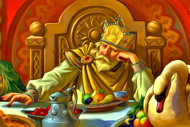 Жил в стране обычный король, Но не обычно любил он соль! Всё пересолено, куда ни гляди - Картофель, и суп, и лещи! И если вдруг недосол на столе, Этот король - уже не в себе! И повар солить быстро спеши - И картофель, и суп, и лещи! Но как обычно случилось вдруг, Вот такой пробежался слух: Сам король переперчил И картофель, и суп, и лещи. И вот во рту короля огонь - Он не чувствует сахар и соль, И голос его немного пищит На картофель, на суп и лещи. И ночь прошла, и день прошёл, А во рту всё горит огнём И при том хоть кричи, хоть свищи На картофель, на суп и лещи! И только на день третий или пятый, Король зарос - не бритый, волосатый, Понял - вкус пропал и не ищи На картофель, на суп и лещи! Теперь может ложками есть он соль, Теперь любой перец уже не огонь Теперь ест он и кислые щи И картофель, и суп, и лещи! Теперь короля легко обмануть - Соль, сахар иль ещё что-нибудь Он съест, а ты не греши На картофель, и суп, и лещи! Такая безвкусица у короля Об этом