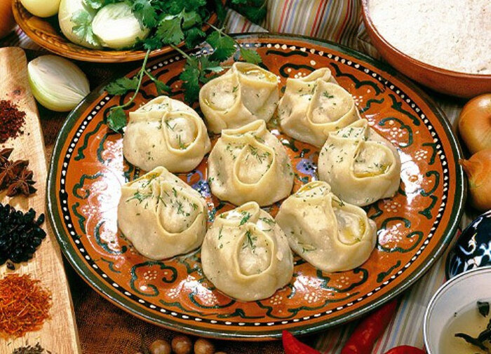 Манты – типичное блюдо казахской и среднеазиатской кухни. Фарш для них делают из мелко рубленной баранины с большим количеством лука, черным перцем, тмином, солью и маленькими кусочками бараньего сала. В начинку иногда добавляют отваренный горох или свежую зелень; казахи также готовят манты с тыквой и творогом.