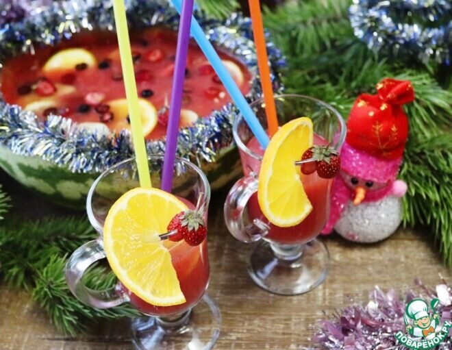 Автор: сергей кольянко | 8 февраля, 2023 Арбузный пунш с ягодами и вином Ну кто не смотрел мультфильм «Мадагаскар» про приключения зверей из зоопарка? Многим полюбилась четвёрка пингвинов, которые всегда найдут выход из безвыходного положения. Позже, появился отдельный мультсериал о Шкипере, Ковальском, Рико и Рядовом. В одной из серий они готовили на Новый Год рыбу и пунш. Слово «пунш» происходит от древнеиндийского «панч», что означает «пять». Пунш готовился из пяти компонентов: вино, ром, фруктовый сок, сахар (мед) и пряности. Пунш может быть как горячим, так и холодным. Категория: Напитки Алкогольные напитки Коктейль Ингредиенты для «Арбузный пунш с ягодами и вином»: Готового блюда ккал