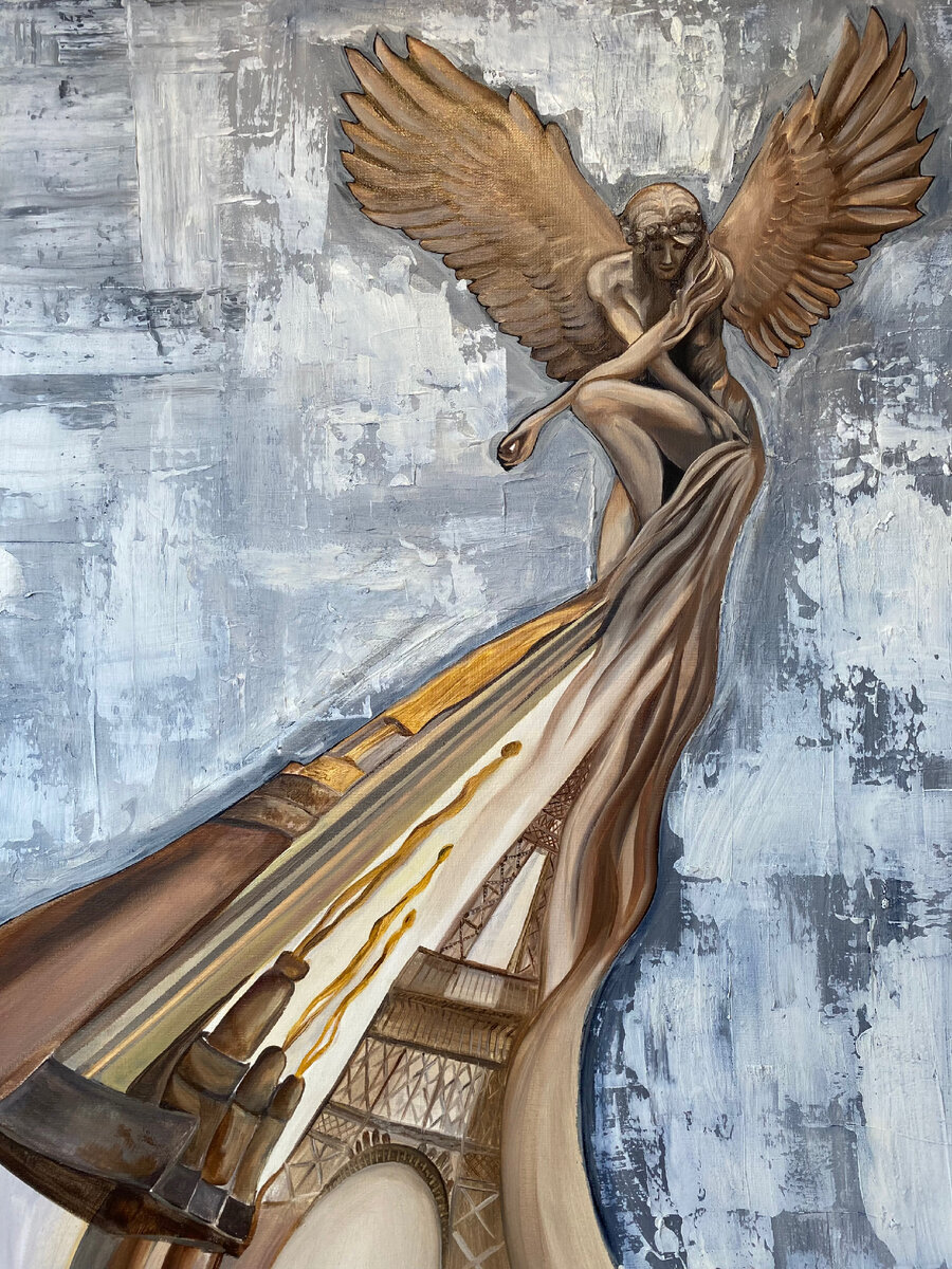 Добрый вечер, мои дорогие! Сегодня исполнился ровно год моей картине «Похищение Европы» и я считаю это отличным поводом про нее вспомнить и рассказать! 8 февраля 2022 года в подписи к этой картине появился следующий текст: За основу взята «Скульптура ангела» Бенджамина Виктора. В 2019 году о художнике узнал весь мир, т.к. его работы попали в Капитолий. На моей картине девушка утягивает за собой Европу. Если присмотреться, можно увидеть Эйфелеву башню, стремительно исчезающую в подоле платья. Я постаралась вложить в эту работу полуполитическую концепцию. С каждым разом мне все сложнее принять изменения, происходящие на Западе. Новая этика, гиперболизированная толерантность ко всем и вся, абсолютная подмена понятий и двойные стандарты. Идея свободы и равенства постепенно перетекает в фанатизм. Либо ты принимаешь правила игры, либо становишься изгоем. Возможно, мое видение категорично-но я воспринимаю меняющийся мир именно так. Самое обидное, что Европа с ее величайшей историей и культ