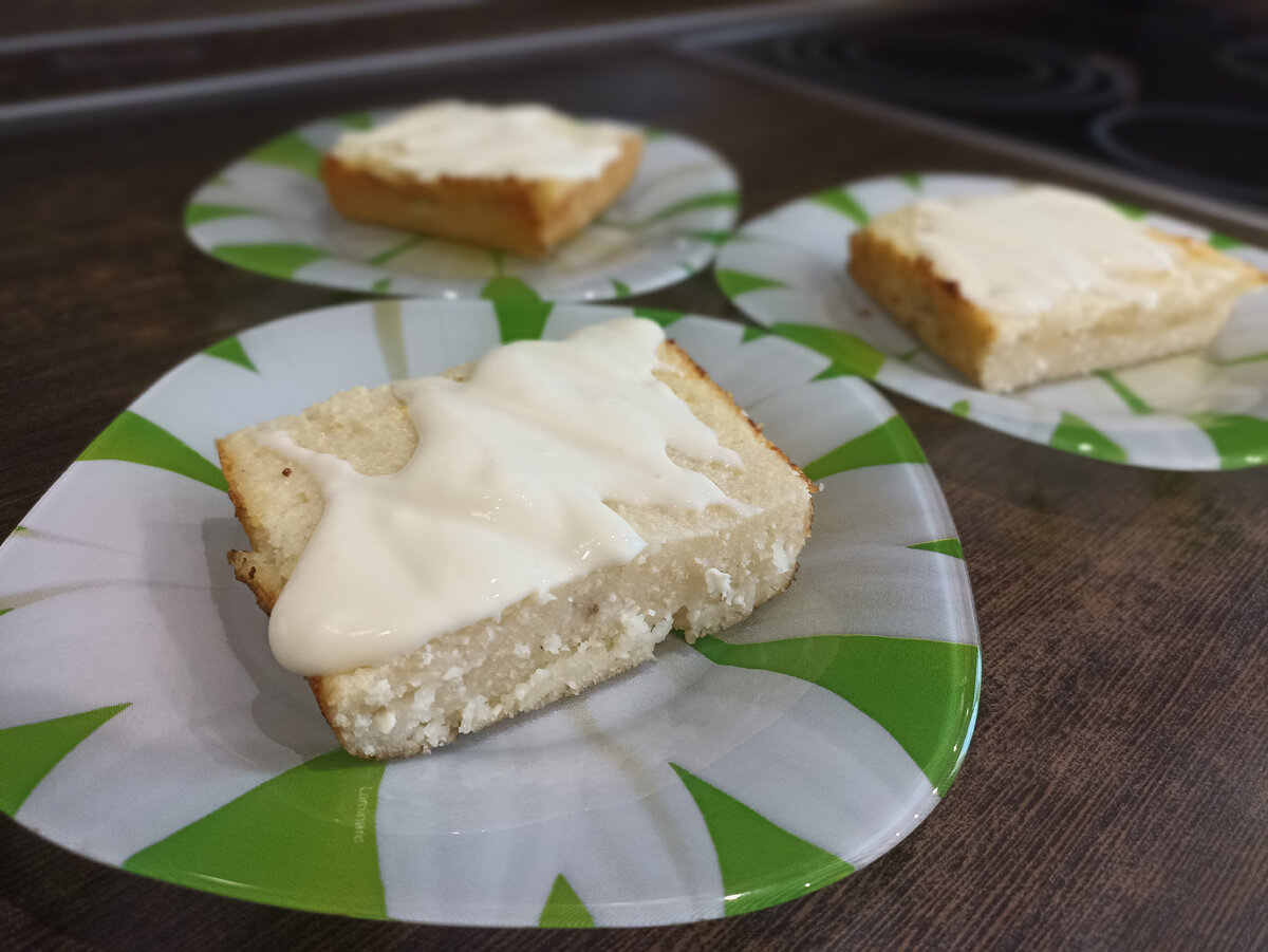 Сегодня дети попросили сготовить для них любимою запеканку. Они её очень хорошо кушают. Поэтому я решила поделиться с вами рецептом. Нам понадобится: - Творог 5 % - 1 упаковка - Сахар 120 гр. - Сливочное масло 10 гр. - Манка 3 ст. ложки - Банан 1 шт. - Сгущëние молоко - 2 ч. л - Сметана 20%- 2 ст. л Начинаем готовить. Творог смешиваем с сахаром и манкой, смешиваем до однородной массы. Убираем минут на 15 - 20, что бы манка немного разбухла. Затем чистим и нарезаем банан кольцами. Смазываем сливочным маслом форму. Творожно-манную массу делим её на две части. Первую часть выкладываем на смазанную форму, далее поверх смеси выкладываем банан, а сверху оставшуюся часть смеси. Выпекаем при 180 градусах 20 минут. Пока запеканка в духовке, готовим подливку из сметаны. Для этого нужно смешать сметану и сгущённое молоко. А после поливаем этой заливкой готовую запеканку. Приятного аппетита!!!