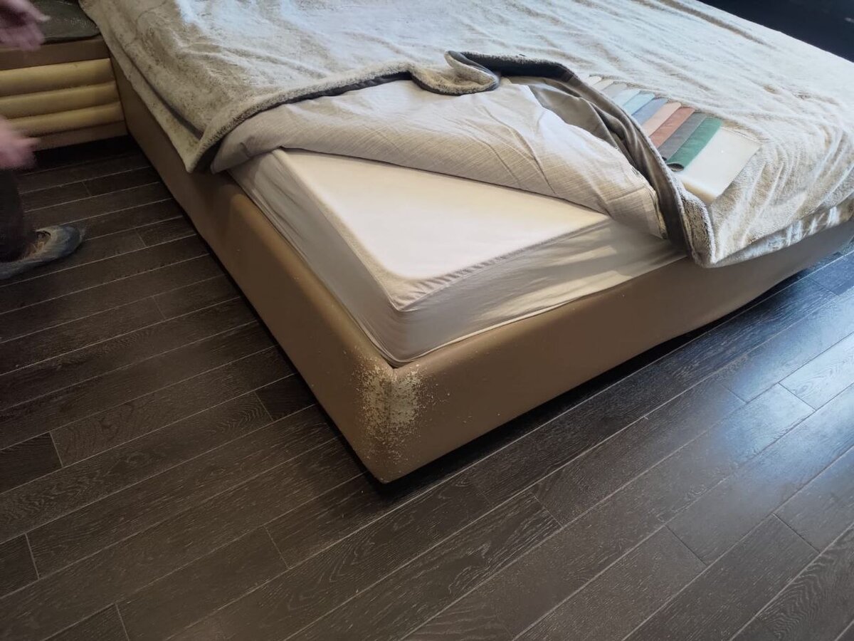 Легко! Чаще всего к нам обращаются за перетяжкой диванов, кресел, кухонных уголков. Но мы меняем обивку на любых видах мебели, включая изголовья кроватей, тумбы, комоды, скамьи в гардеробных системах, стойки ресепшн и даже стены!! Один из последних наших заказов - спальный гарнитур, на котором были сильные повреждения обивочного материала изголовья и основания кровати, а также комода. В качестве нового материала мы использовали мебельный велюр Lambre. Обновили обивку и освежили внешний вид комнаты! Как вам результат?
