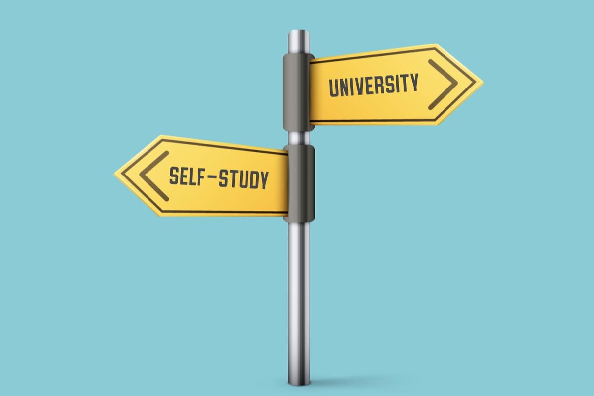 Университетские курсы предлагают преимущества структуры, набора четких целей и возможности учиться у экспертов и общаться с коллегами, но при этом знания, которые дают сегодня, многие специалисты считают устаревшими. Самообучение, с другой стороны, позволяет учащемуся контролировать свой собственный учебный опыт и выбирать темы, которые он хочет изучать, однако при отсутствии силы воли у человека, это может затянуться на длительное время либо вообще не дать никакого результа.