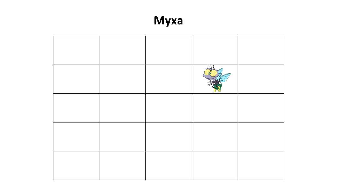 На альбомном листе чертим поле в клетку 5 х 5. Размер поля может быть и другим. Если игра для дошкольника, то начинаем с маленького поля 3х3 и постепенно увеличиваем его. По полю летает муха. В шапке-невидимке. Задача ребенка отследить ее перемещения и сказать, где она остановилась. Следим только глазами, без помощи рук. Для дошкольников и первоклассников первое время муха в виде фишки, крышечки, пуговки, чтобы ребенок научился