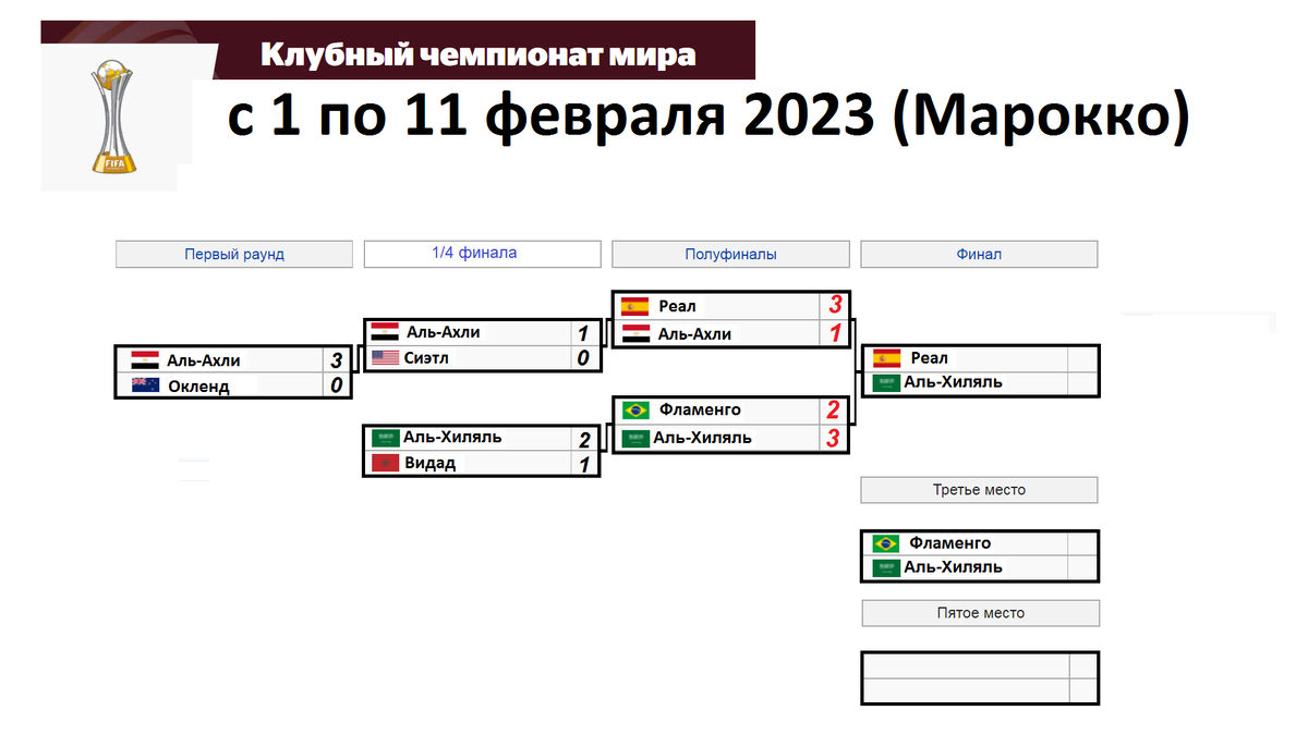 Неожиданный вылет Фламенго. Клубный ЧМ по футболу 2023. Кто в финале? Результаты, расписание, схема.