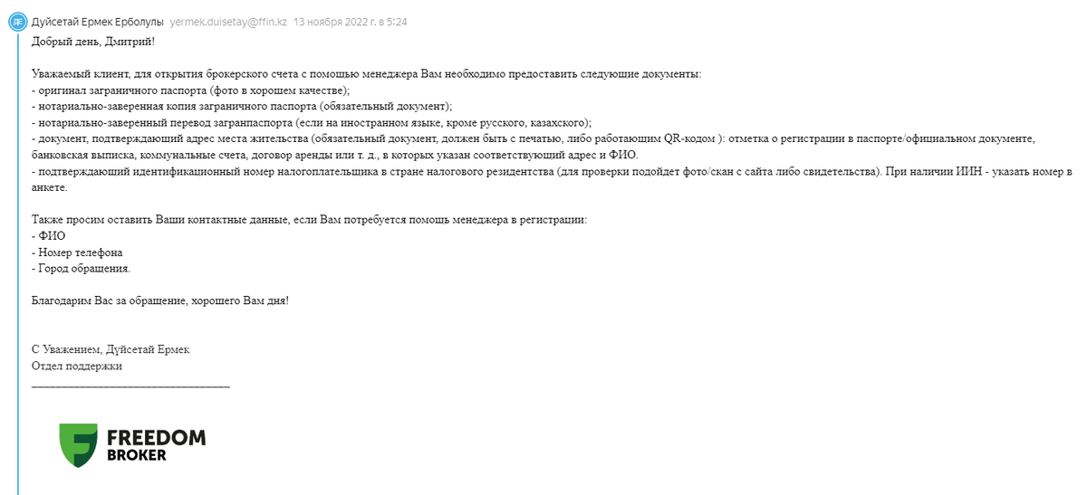 - Говорите, что хотите открыть брокерский счёт и вы нерезидент;