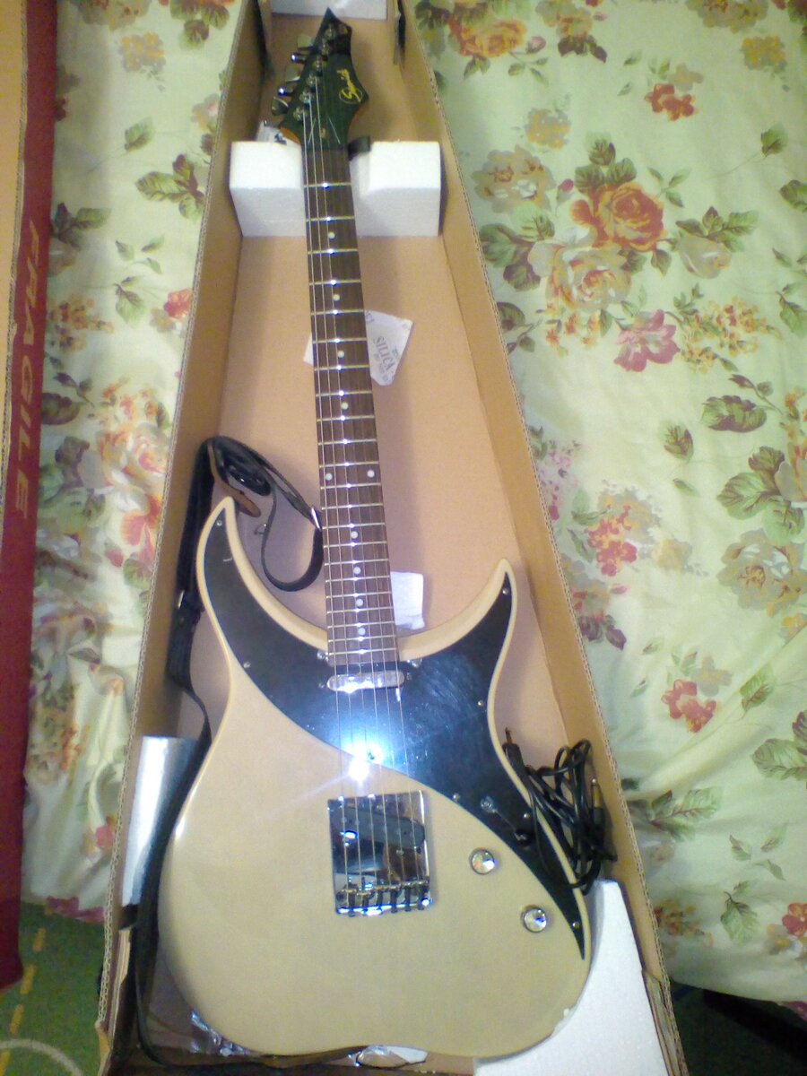 Для моего полноценного возвращения на стезю малого домашнего гитаризма была необходима, собственно, гитара; мало того – электрическая гитара. И здесь вариантов было два – поездка в ближайшие Магнитогорск или Челябинск и покупка б/у инструмента, либо покупка нового и… по месту! Дело в том, что под боком нашего уездного городишки развернул свою деятельность музыкальный салон «Jumbo», в который я и отправился за покупкой. Мои изначальные требования к инструменту: максимальное соотношение цена/качество, удобство игры, бридж – hardtail, конфигурация звучков: S-S или H-S. Придя в салон, я быстро нашел нужный экземпляр. Встречаем: Samick RS-10 Rose Series Первые впечатления: аккуратная сборка, довольно толстая дека с анатомическими вырезами: Гриф – судя по всему, клен, сзади лакирован; накладка – палисандр. Лады – 22 штуки, закатаны хорошо. Крепление к корпусу – четыре шурупа через две металлические пластины. Сам гриф довольно тонкий и широкий, пятка скошена: Колковая механика без замечаний.