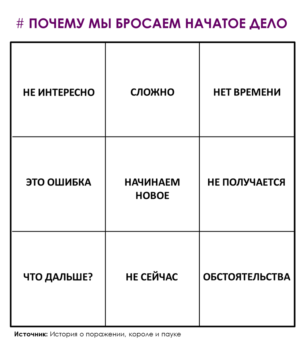 В одном из прошлых выпусков я писал про причины, по которым мы бросаем то или иное занятие, отказываемся от своих целей, предаем мечты. А после, перечитывая свой же выпуск (а пишу я в канале чтобы после можно было почитать) я взял несколько "нерешенных задач", от решения которых я по сути отказался и немного переделал матрицу причин. Так как нашел прямо "золотое дно", источник настоящих оправданий. До этого я исходил из позиции "Я бросил", "Я остановился", "Я отложил", а внешняя среда, которую, по определению, мы не контролируем, она является самой главной "причиной" того, что мы не завершаем дела, а по сути бросаем на полпути. И с этой позиции интересно посмотреть на другую историю, когда именно внешняя среда буквально заставила нас сдаться и проиграть! Это история про Наполеона, когда он после проигранного сражения вызвал своего генерала и спросил о причинах поражения. А генерал и ответил, что на это есть девять причин: