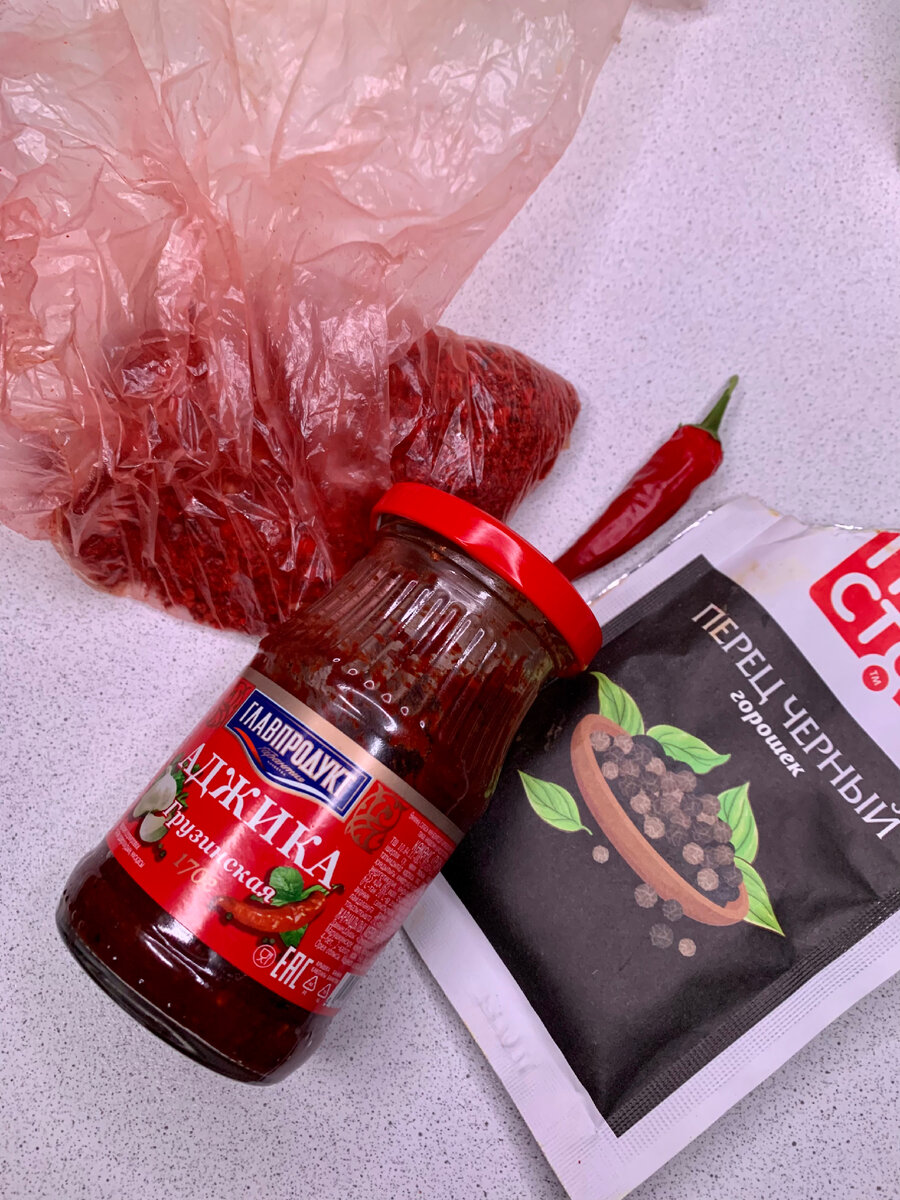 Очень сытный и вкусный свиной окорок, запеченный в букете специй. Подойдет на ужин или праздничный стол. Отличное МЯСО, к любому гарниру, с багровой красной корочкой. Тебе понадобится: кусок свиного окорока около 1 кг. 5-6 зубчиков чеснока, соус, соль, черный молотый перец, сухая паприка. Первым делом, нужно промыть мясо, и срезать лишний жир, и свисающие куски. Затем, нужно проткнуть МЯСО ножом, я делаю произвольные крестики вот так: В получившиеся отверстия, позже вставим чеснок. Далее - маринад. Нужно смешать аджику, паприку и молотый перец, и хорошенько натереть мясо, массирующими движениями. Нарезаем и очищаем чеснок, натираем часть зубчиков на терке, а часть- вставляем в отверстия. Убираем мясо в полиэтиленовый пакет, плотно завязываем, и убираем на полтора- два часа в прохладное темное место. Пока ставим разогреваться духовку. Затем достаем мясо, выкладываем на фольгу и посыпаем смесью соли, и копченой паприки. Соли можно добавить по вкусу, паприки- по максимуму) Запекаем окоро
