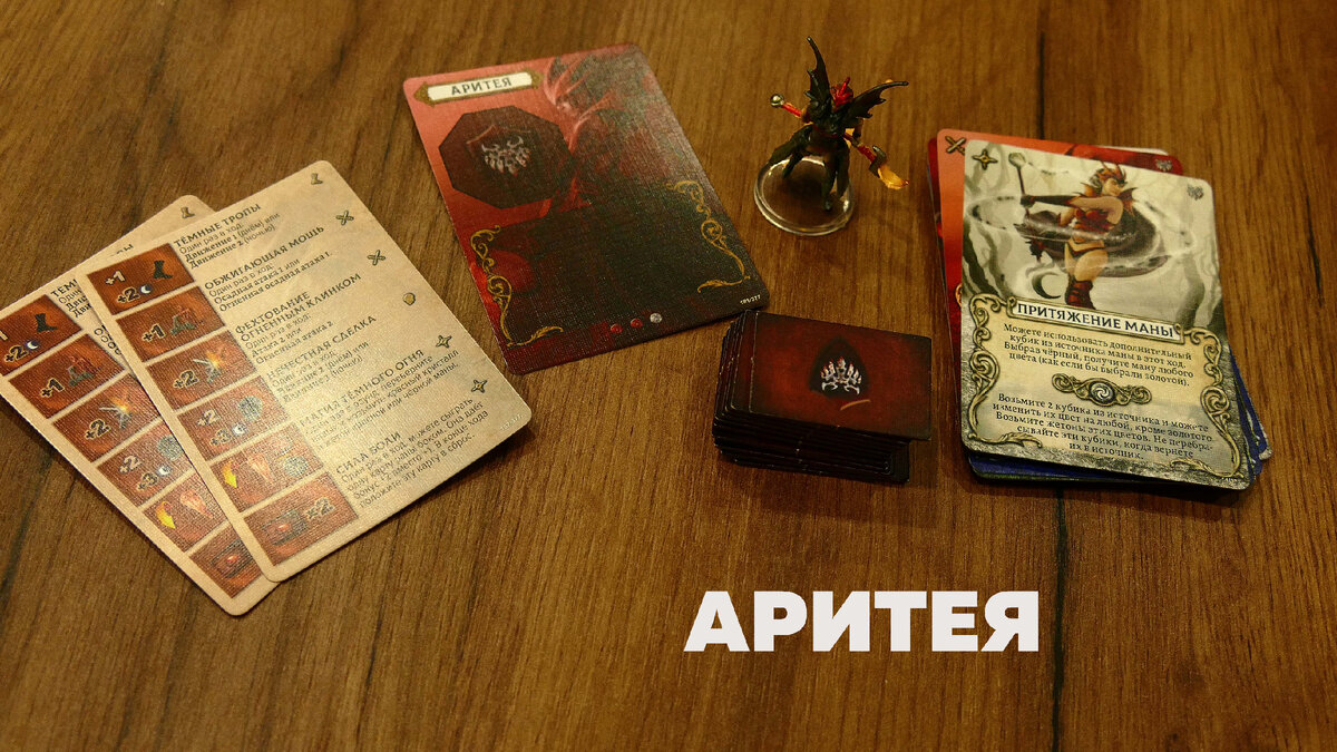 В отличии от Товака, Аритея больше маг чем рыцарь. Тёмная колдунья, специализирующаяся на темной магии разрушающего огня, легко жонглирующая маной. В её руках надёжный магический жезл, позволяющий запускать мощные фаерболы и проводить огненные атаки. Если врагу удастся добраться до неё и нанести ей раны, то даже это она использует в собственных интересах. Настоящая Малефисента из мира Mage Knight.