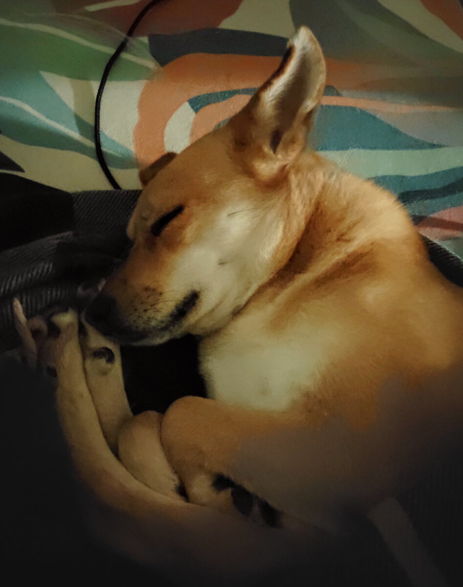 Сегодня у меня день загородной жизни. Кайф собачника, живущего за городом, да ещё и работающего из дома - в отсутствии острой необходимости по утрам бродить по улице с собаками. Особенно, когда холодно или погода плохая. Есть, конечно, побочка, в регулярной уборке на участке, но мои псы предельно облегчили мне работу - у них имеются "туалетные" уголки, убираются которые легко и быстро. Гулять мы тоже ходим - для собачьего умственного развития и своего удовольствия. Но, если нет настроения или самочувствие не очень хорошее, ломиться утром из дома нет нужды, можно спокойно перенести прогулку на другое время. Вот сегодня я так и сделала: выпустила, покормила и присела на диванчике в гостиной. Скажите, это вообще законно, так сладко спать под боком у хозяйки, подгребя под себя половину пледа? А похрапывать так, что завидки берут? Дома холодно, из-за околонулевых температур повысилась влажность и это даже себя знать. Муж исправит за пол часа, закинув в котëл пеллеты (ещё один кайф за