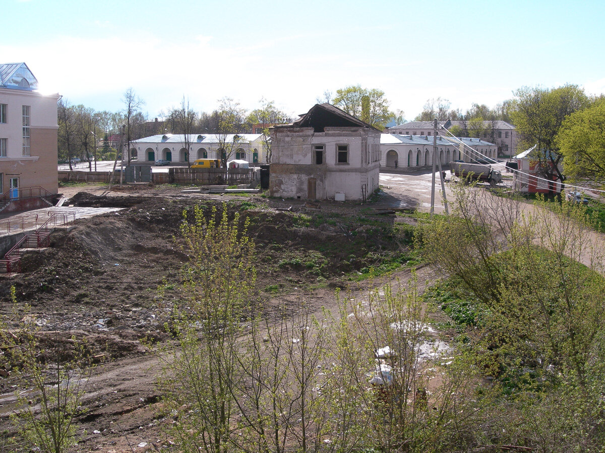 За 15 лет Верея серьезно продвинулась вперед. Вот снимок с юго-западной части крепостного кремлевского вала, сделанный 13 мая 2007 года. Полуразрушенный двухэтажный памятник архитектуры конца XVIII века, грязь, мусор.