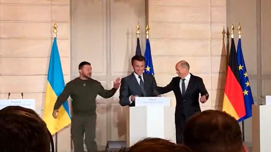 Шольц и Зеленский перепутали флаги стран на пресс-конференции в Елисейском дворце