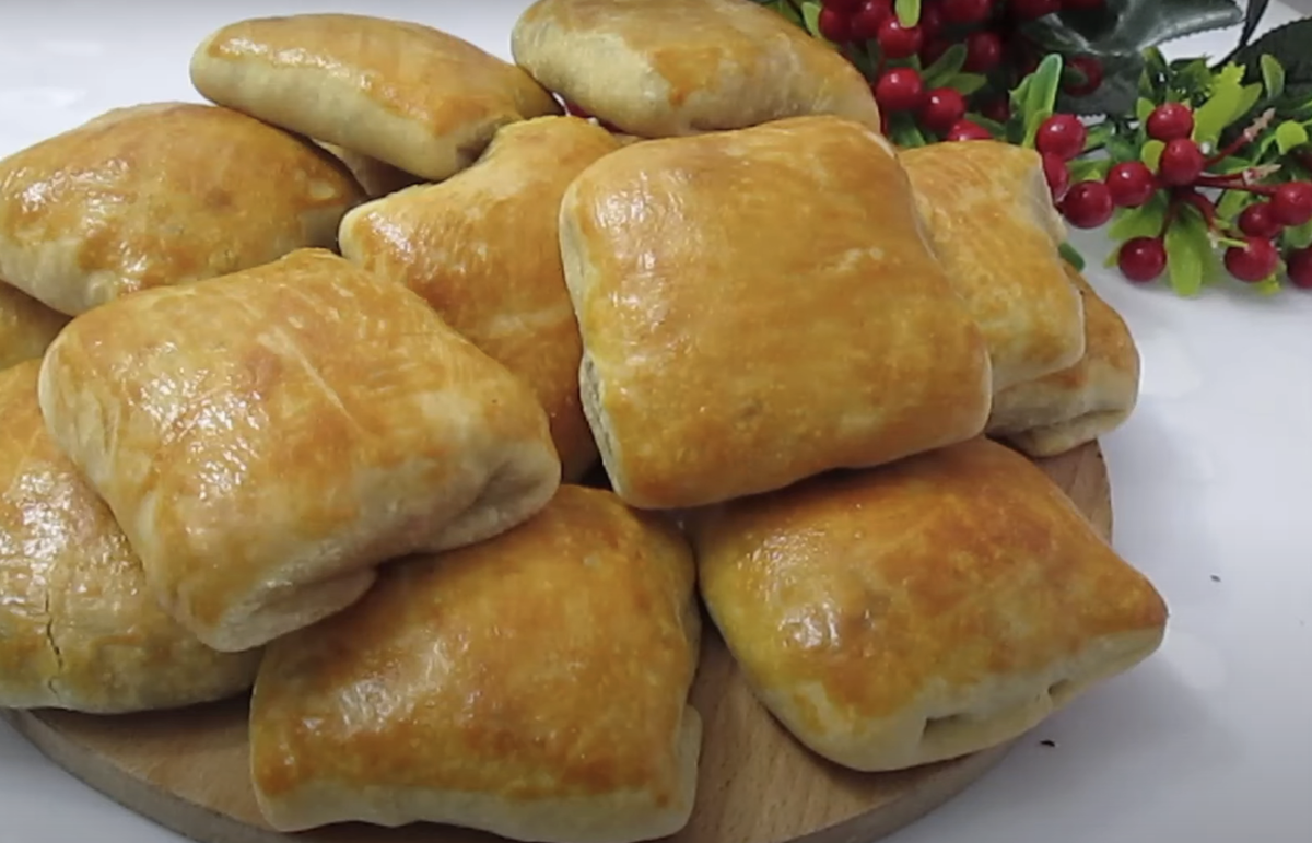 Этот хлеб будет отличным дополнением к различным блюдам. ИНГРЕДИЕНТЫ ПОШАГОВЫЙ РЕЦЕПТ 1. Приготовим тесто Смешайте в чашке 1 стакан йогурта (220 мл), пол стакана (100 мл) теплой воды, 4 столовые ложки растительного масла и 1 яйцо. Перемешайте и затем добавьте 5 стаканов (600 г) муки и 1 чайную ложку соли. Тщательно перемешайте. У Вас должно получиться мягкое тесто, которое не липнет к рукам. Накройте пленкой и дайте постоять 20 минут. 2. В это время приготовим начинку Начнем с фарша. На среднем огне нагрейте растительное масло в сковороде. Выложите на сковороду мясной фарш (500 г) и немного обжарьте. 3. Как только цвет фарша поменялся, добавьте чеснок по вкусу 4. Затем добавьте нарезанный болгарский перец (2 шт.) 5. Далее добавьте 5 нарезанных стеблей лука-порей 6. Потом добавьте в сковороду 1 ч.л. соли (8 г), 1 ч.л. паприки (4 г), 1 ч.л. черного перца (4г), 1 ч.л. мяты (4г) и 2-3 веточки петрушки Тщательно перемешайте и обжарьте до готовности. 7. Присыпьте поверхность стола мукой, ска