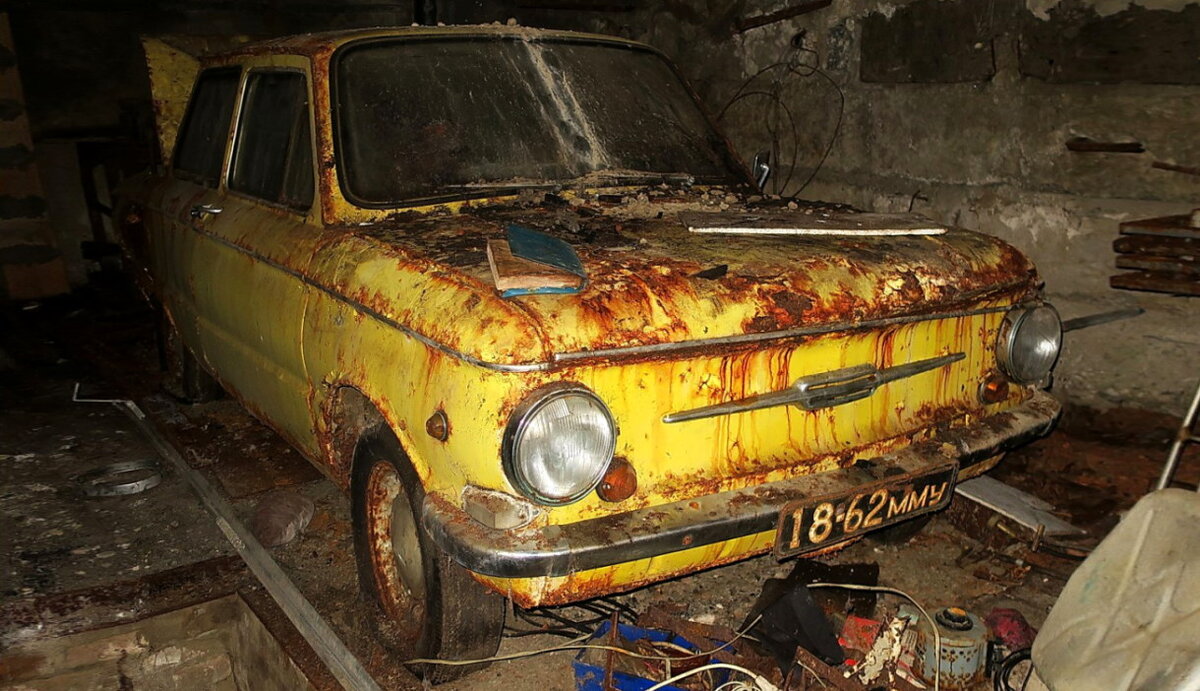 Обычно слова «гаражное хранение» говорят о хорошем состоянии подержанного автомобиля. Но здесь явно не тот случай. Пользователь сайта Platesmania.com опубликовал фотографии «Запорожца» ЗАЗ-968, найденного в одном из гаражей Москвы. Как отмечает автор снимков, эта жёлтая машина не выезжала на дороги четверть века — с 1997 года. Судя по всему, атмосфера в гараже была не самой благоприятной, и помещение вполне можно было использовать как коррозионную камеру для испытаний лако-красочного покрытия. Весь кузов «Запорожца», колёса, бамперы, двигатель изъедены рыжей ржавчиной. Выглядит машина жутковато. В салоне ситуация не лучше. Обивки сидений почти полностью сгнили, пластик руля и передней панели безвозвратно испорчен. В более-менее приличном виде сохранились только обивки дверей. Дальнейшая судьба такого «Запорожца» понятна — металлоприёмка и утилизация. За последние годы в Москве сносили много гаражей, и в них время от времени находили старые автомобили — посмотрите подборку фотографий та