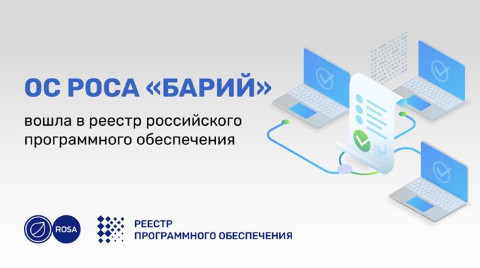 Компания «НТЦ ИТ РОСА», занимающая разработкой системного программного обеспечения на базе Linux, в том числе по требованиям российского законодательства в области защиты информации, сообщила о включении в реестр отечественного программного обеспечения платформы РОСА «Барий». ОС РОСА «Барий» поставляется в формате Live-дистрибутива и предназначена для организации безопасной удалённой работы сотрудников в корпоративной среде. Продукт содержит необходимый набор ПО и выпускается в двух вариантах: как дистрибутив для самостоятельной установки на флеш-накопитель и как решение в виде предустановленного дистрибутива на токене «Рутокен ЭЦП 2.0 »с сертификатом ФСТЭК России. Включение в реестр подтверждает российское происхождение операционной системы РОСА «Барий», а также позволяет коллективу разработчиков компании «НТЦ ИТ РОСА» рассчитывать на государственные меры поддержки, оказываемой поставщикам отечественного ПО. На сегодняшний день в реестре российского ПО зарегистрированы более 16 тысяч