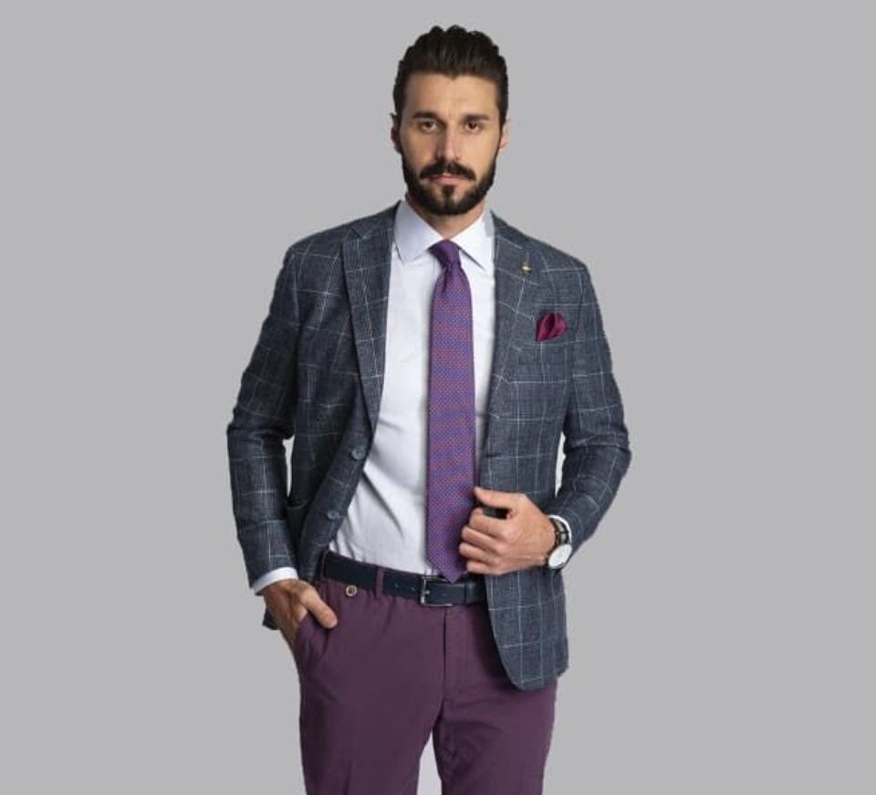 - Чтобы разнообразить свой внешний вид, подумайте над приобретением второй пары брюк к пиджаку, возможно, в контрастном цвете.