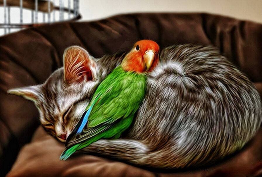 Полли, попугай, жила в большой клетке в доме, наполненном любовью и смехом. Она была общительной птицей, которая любила общаться с окружающими ее людьми и играть со своими игрушками. Однажды по соседству поселилась новая семья, которая привезла с собой крошечного котенка по имени Вискерс.