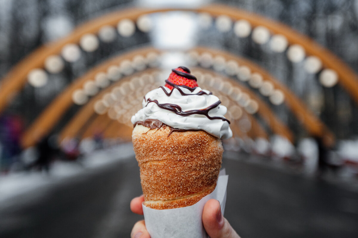 Попробовать его можно на пересечении 4-го Лучевого просека и Большого круга, а также на пересечении Майского просека и Большого круга Чуррос - десерт из сладкого заварного теста, обжаренного во фритюре. От нежных и тающих во рту палочек просто невозможно оторваться! Насладиться им можно на пересечении Главной аллеи и Большого круга и на пересечении Песочной аллеи с Большим кругом Торт манго-маракуйя с нежнейшим творожным кремом и муссом порадует всех любителей необычных вкусов, а меренговый рулет с воздушным кремом и маскарпоне поразит ярким вкусом фисташек и малины