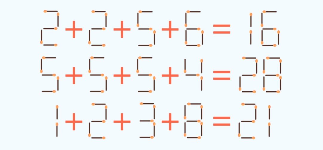 Как решать головоломки с спичками? Очевидно, что решения различаются в каждом случае, хотя есть некоторые общие рекомендации. Совет может часто быть найден в основном утверждении, поэтому вам нужно внимательно его прочитать. Анализируйте, есть ли какое-то "двойное дно" или ловушка. Готовьтесь к нетривиальному решению, в противном случае задача не называлась бы головоломкой. Помните, что спички по умолчанию можно наложить друг на друга (если не указано иначе в условиях), переместить в любом направлении и перевернуть. Вы часто можете видеть задачу переместить только одну спичку, чтобы получить какую-то фигуру или определенное количество фигур. Не забывайте: несколько маленьких фигур (например, квадратов) могут составлять одну большую. Не торопитесь. Не пытайтесь пройти упражнение быстрее. Идите шаг за шагом. Спешка не принесет вам пользы. Ответ, как всегда, не очевиден с первого взгляда.