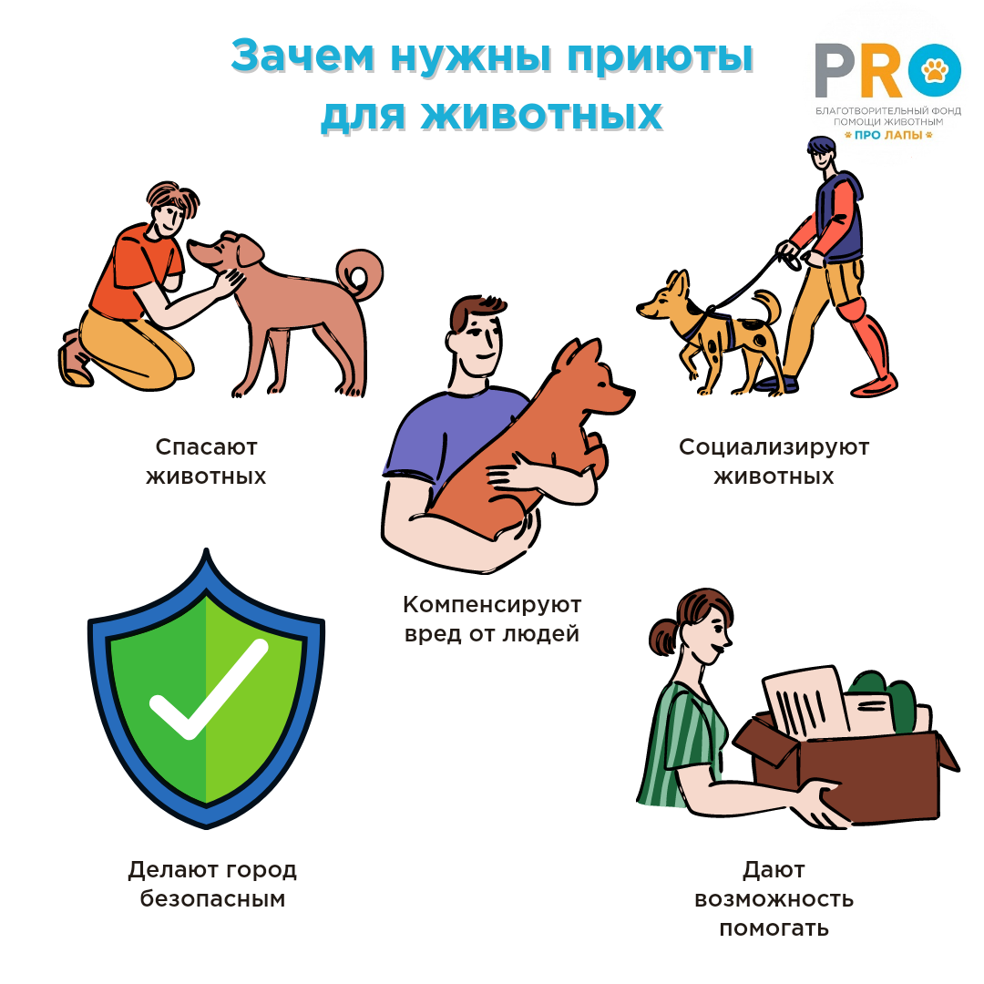 Кажется, что ответ достаточно очевиден, и все же есть люди, которые считают, что от приютов никакой пользы нет.😔 Сегодня мы расскажем вам, как приюты для животных непосредственно влияют на жизнь каждого из вас. Что делают приюты: ✅ Спасают животных.🐶🐱 Главная цель приютов - это спасти животное и дать ему шанс на жизнь. Не секрет, что бездомные животные живут гораздо меньше и подвержены гораздо большим опасностям, чем те, кто живут в приютах или дома. ✅ Социализируют животных и повышают шанс найти им дом.🏠 Но спасением животных приюты не ограничиваются. Приюты занимаются животными, воспитывают их, лечат, вакцинируют, дрессируют и делают все, чтобы животное было готово для домашней жизни. Поэтому у животного из приюта шансы найти дом гораздо выше, чем у уличного. ✅ Компенсируют вред от других людей.☢ Животные оказываются на улице только из-за безответственности людей. И только из-за халатности чиновников и бывших хозяев происходят нападения бездомных животных на людей. Цель приют