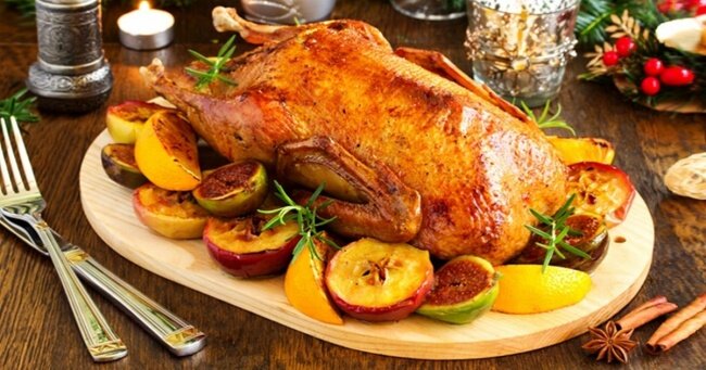 - Нарежьте яблоки на кусочки и добавьте в сотейник с уткой. Готовьте еще 5 минут.